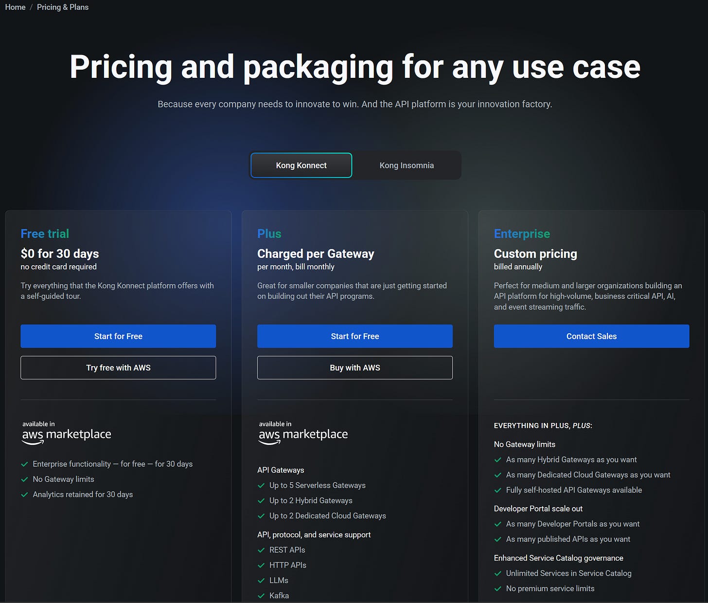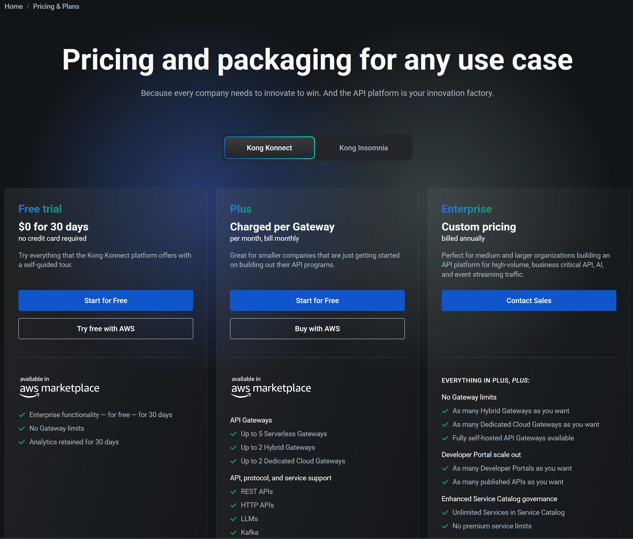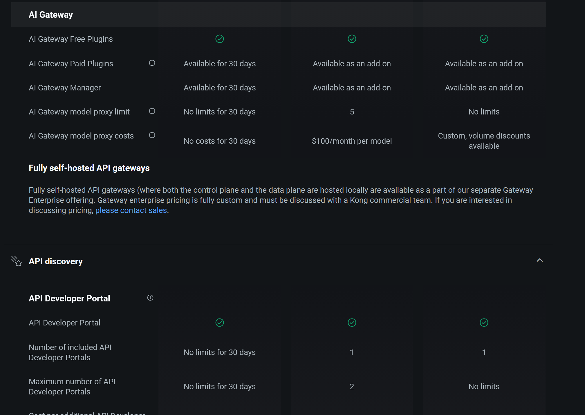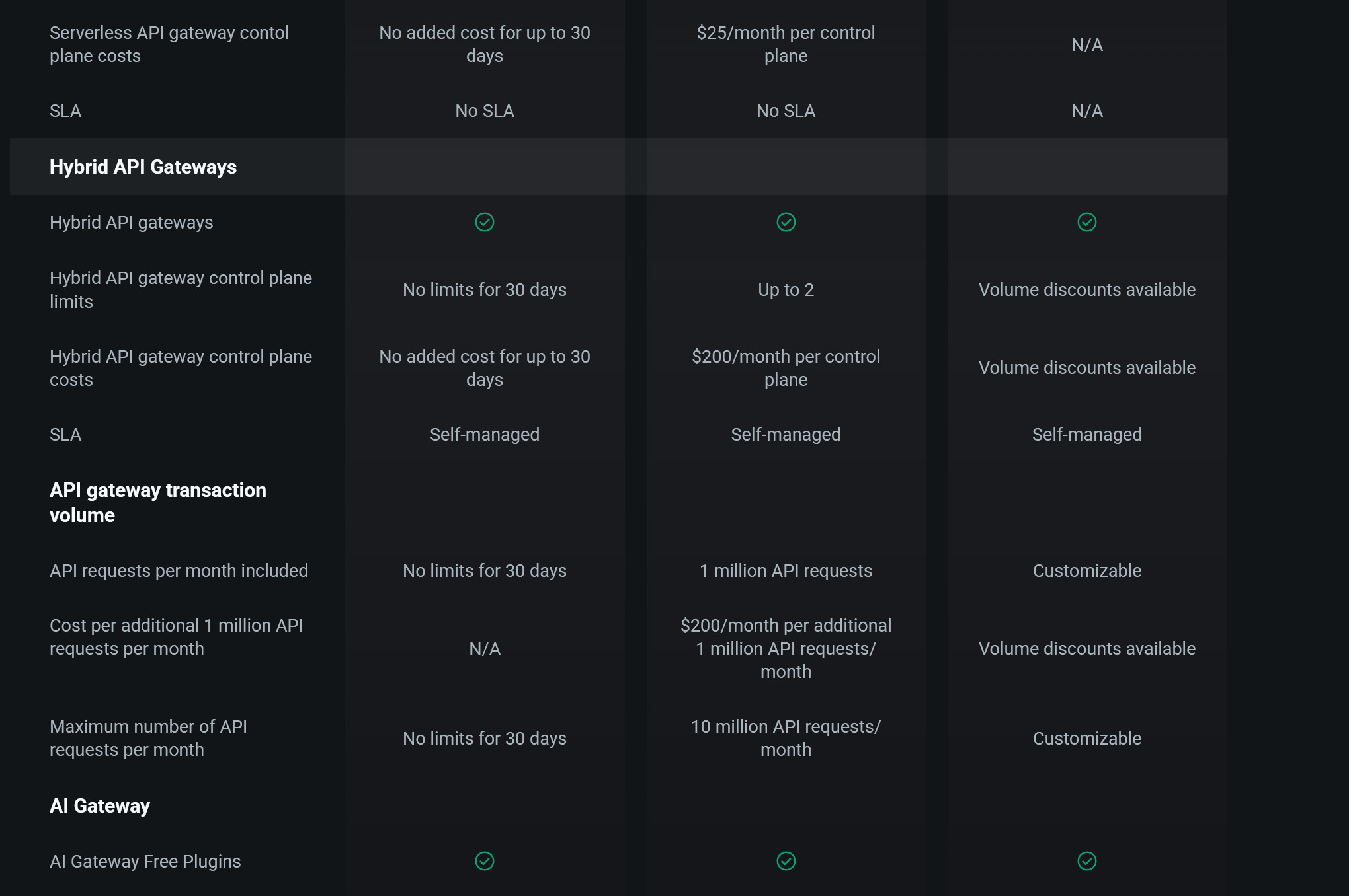 Kong already does something others don’t: explicit AI Gateway pricing at $100 per model-month. The issue is that it risks feeling like an “AI tax” because the ROI story is under-explained.