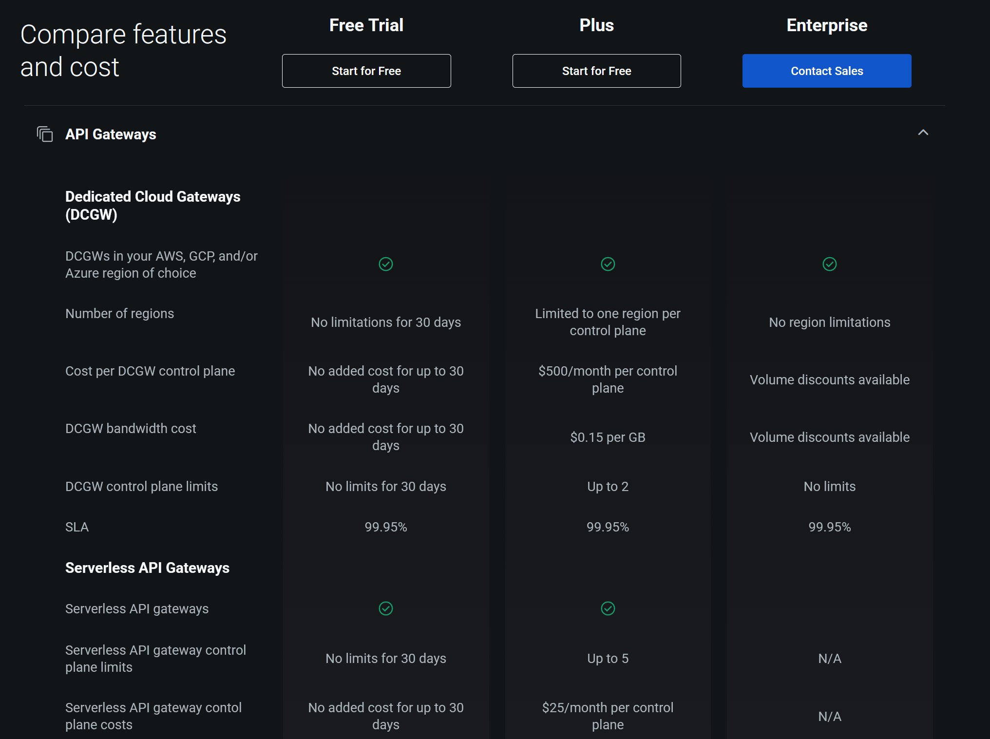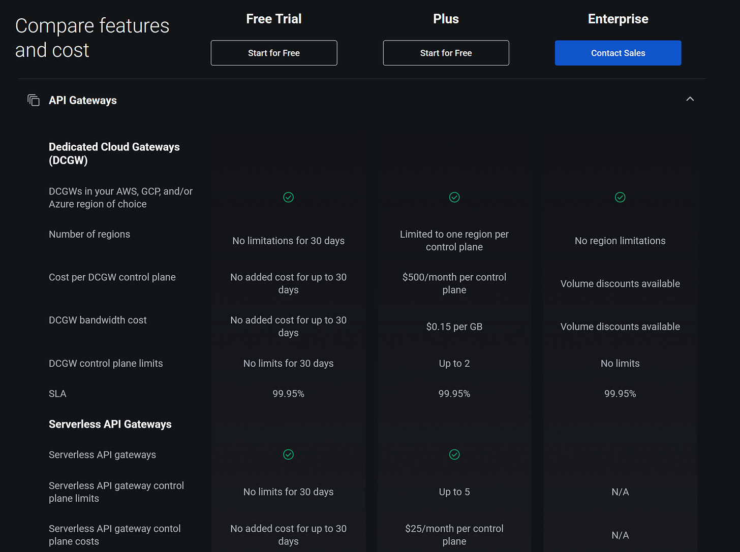 Free Trial: 30 days of full Enterprise functionality, with no limits on gateways or API calls, at $0.