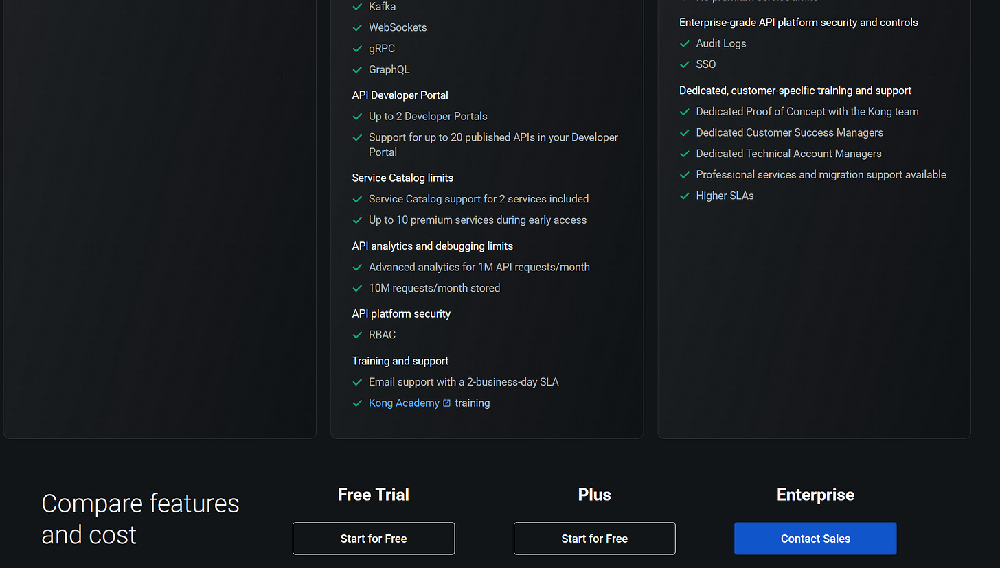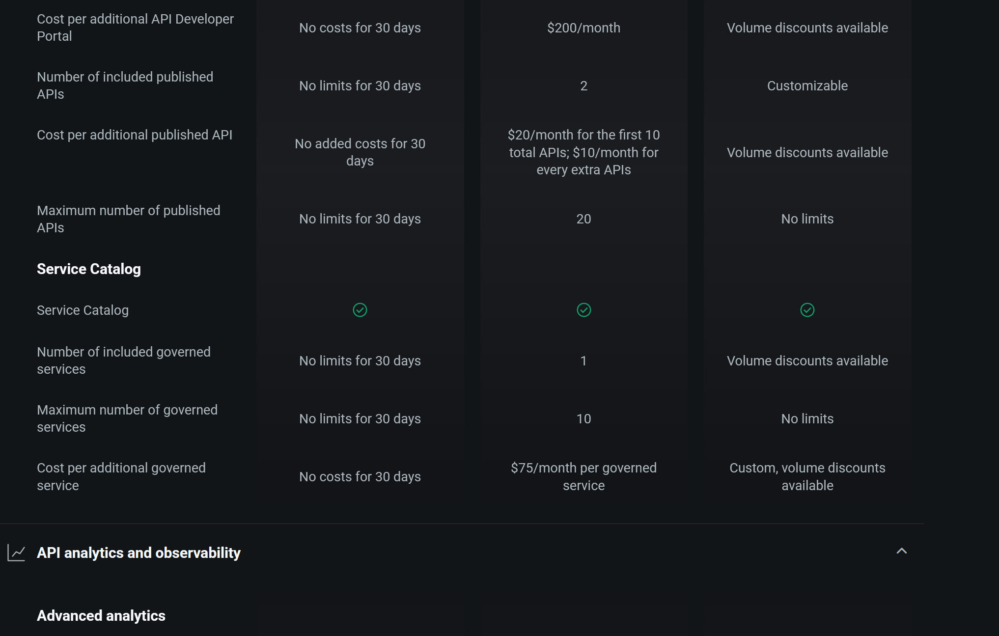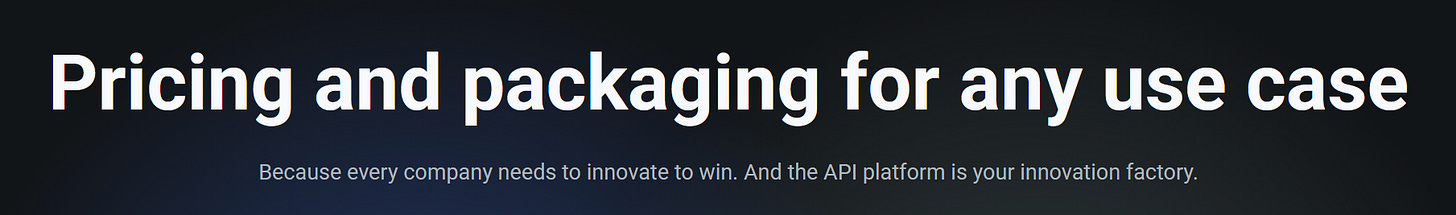 Big competitors (Apigee, Azure API Management, AWS API Gateway, Tyk) already lead with API call + environment metrics. Kong’s multi-table, multi-meter layout looks harder to compare, even when unit economics are competitive.